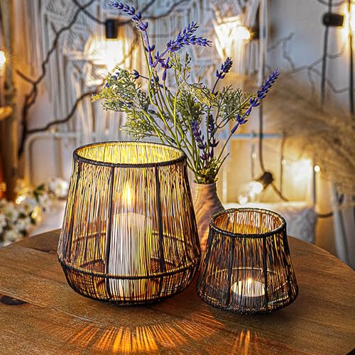 ZEYA Lot de 2 photophores en métal noir doré - 15 plus 9 cm...
