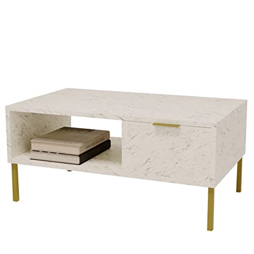 VOWNER Table Basse Marbre Blanc, Table Basse Moderne