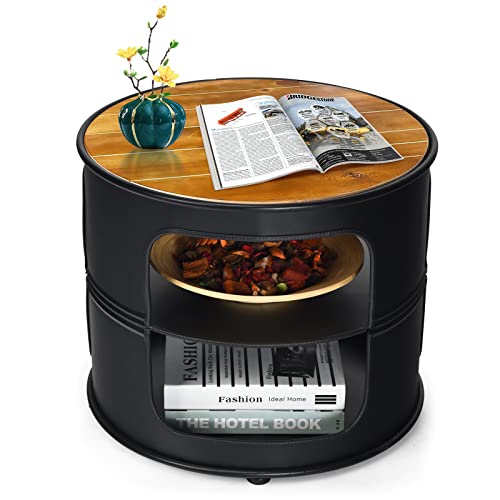 GOPLUS Table Basse Ronde 3N, Table de Chevet en Métal et Boi...
