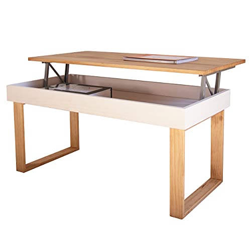 Mas Casa Table basse Ebro relevable bois massif naturel Blan...
