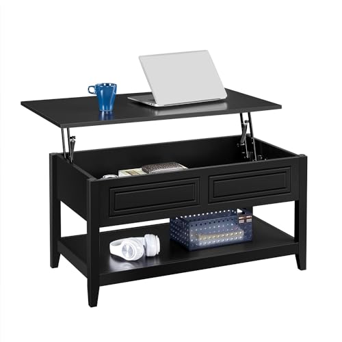 Table Basse Yaheetech, Relevable, Compartiment Caché, Étagèr...