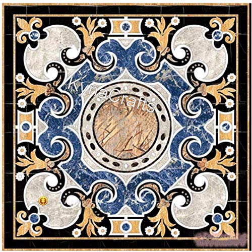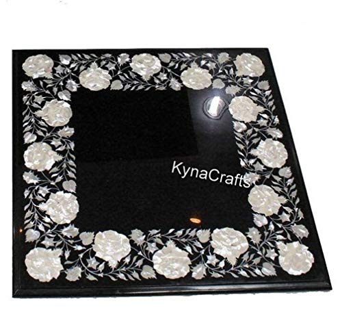 Table basse marbre noir carrée 61x61 cm motif incrusté