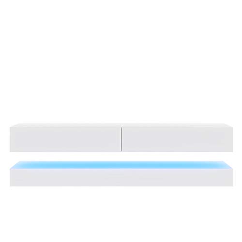 Hylia TV Table Suspendue/Table Basse Mat Blanche LED Bleue