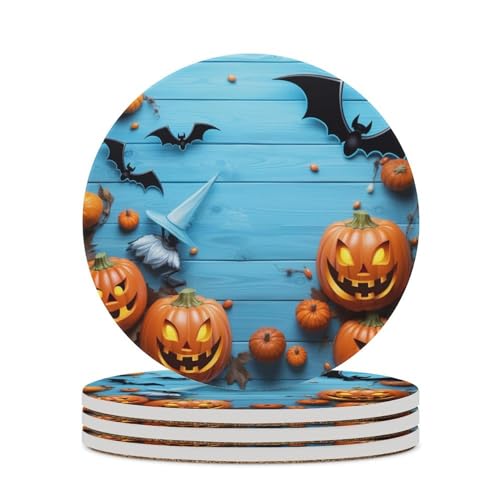 Citrouille et chauve-souris sur bois bleu, résistant à la ch...