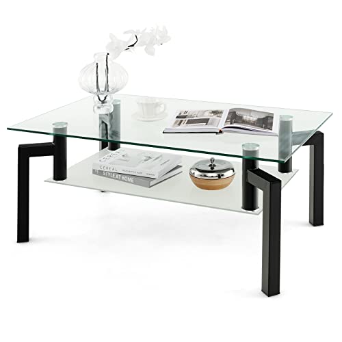 GOPLUS Table Basse Verre Trempé 2N, 90KG Charge