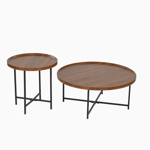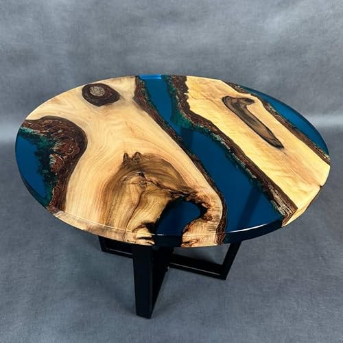 Table basse ronde 70 cm 69,8 cm en résine époxy et bois de n...