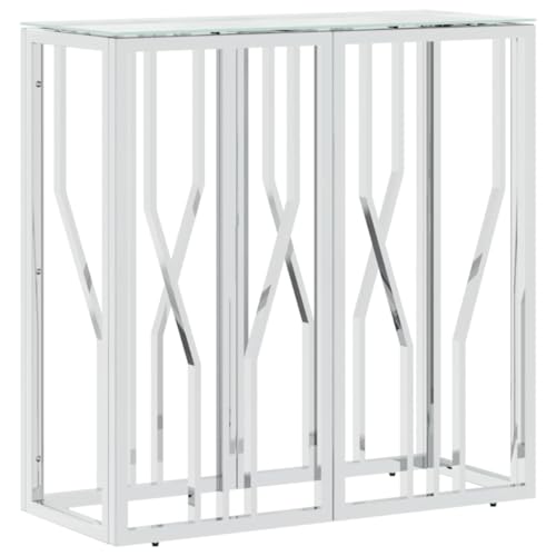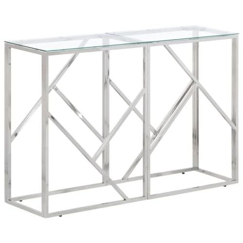 XL Table Console Acier Inoxydable Verre Trempé, Table de Can...