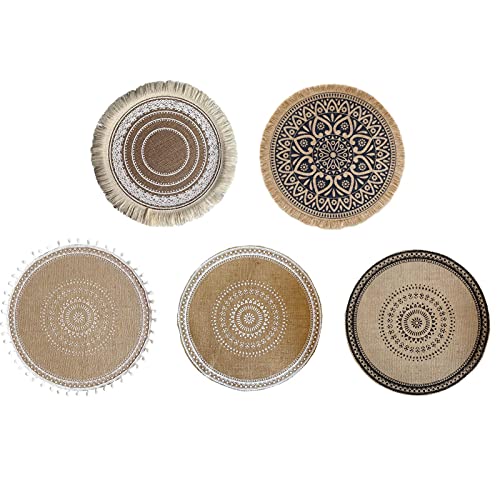 Napperon rond tissé franges jute 38 cm table