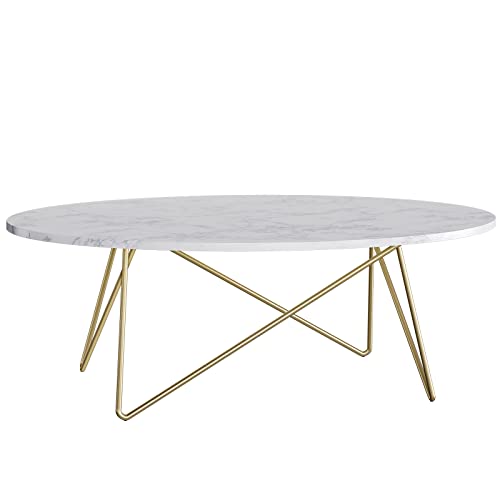 FirFurd Table Basse de Salon Effet Marbré Ovale Table de Can...