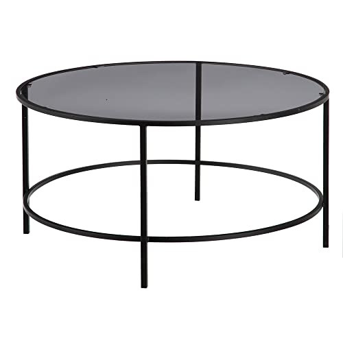 LolaHome Table basse ronde verre métal noir Ø90x45cm