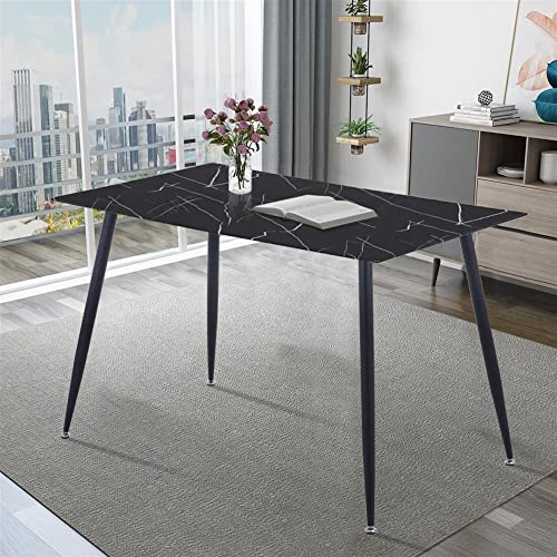 GolDFAN Table Rectangle 4P Noir Marbre Comptoir Verre