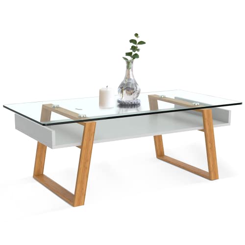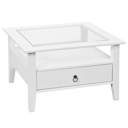 AltoNatur Table Basse Bois Massif Blanc Verre