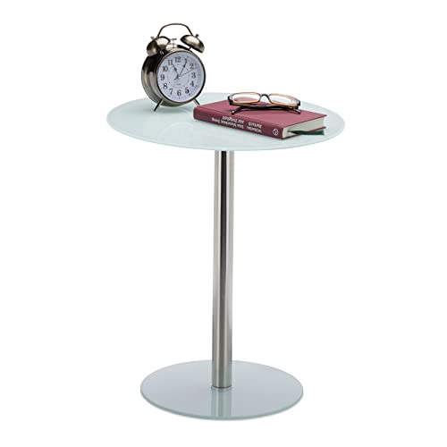 Relaxdays Ronde Verre INOX Table Décorative Blanc