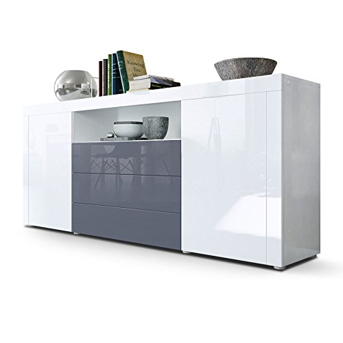Vladon Sideboard Blanc Haute Brillance Modern - Chest of Dra...