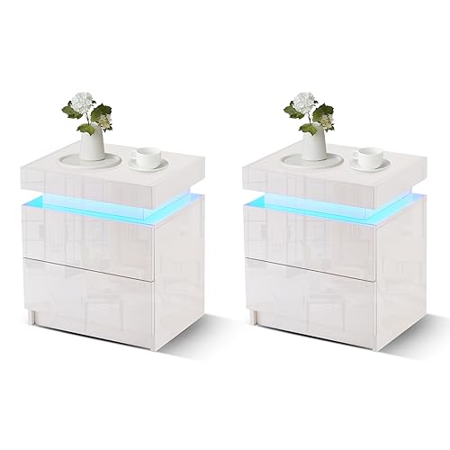 Ocasa 2 tables de chevet LED, 2 tiroirs brillant mat