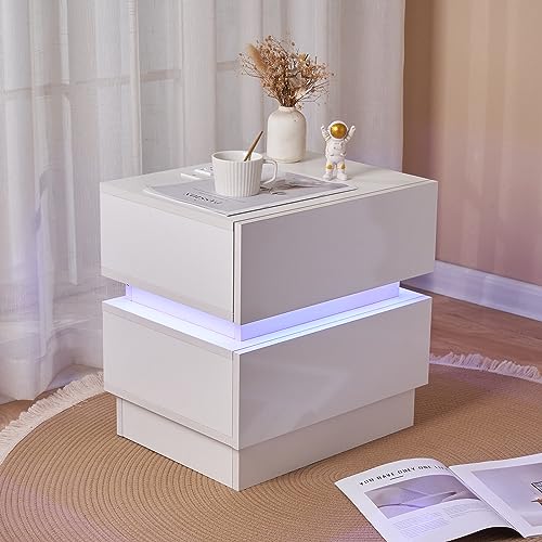 PIPIPOXER Table de Nuit LED avec 3 Tiroir, Table de Chevet B...