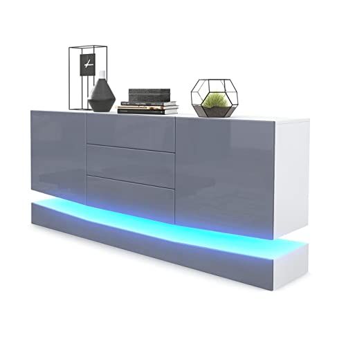 Vladon Sideboard LED Blanc Mat/Gris Haute Brillance Commode