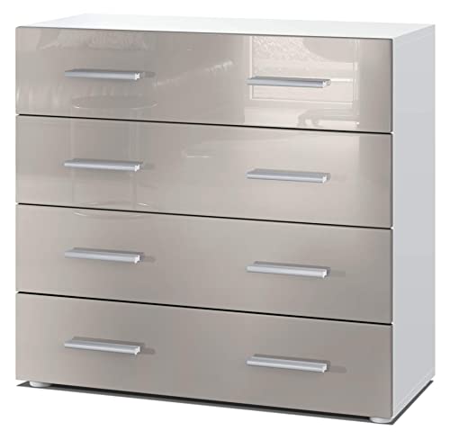 Buffet TV Vladon 4C, Blanc Mat/Gris Haute Brillance