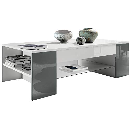 Vladon Table de Salon, Blanc Mat/Gris Haute Brillance 118 x...