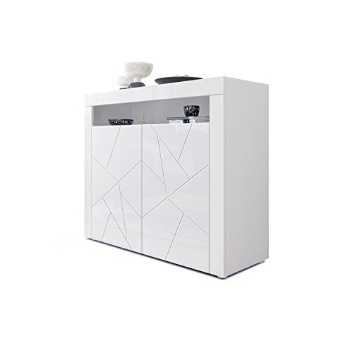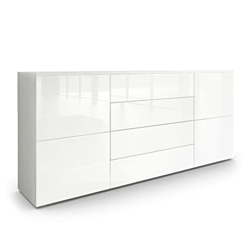 Vladon Commode Valencia Blanc Mat/Blanc Haute Brillance 3D