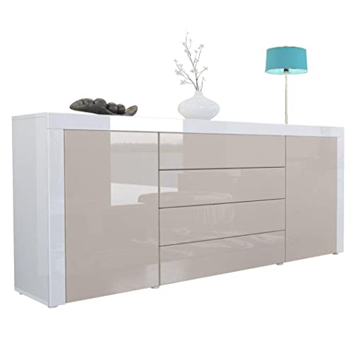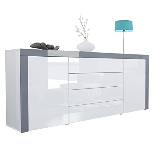 Vladon Sideboard Blanc Mat/Blanc Haute Brillance Commode Mod...