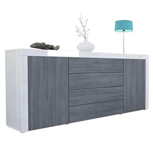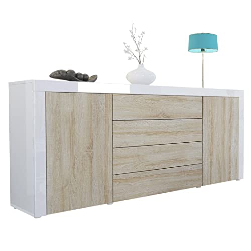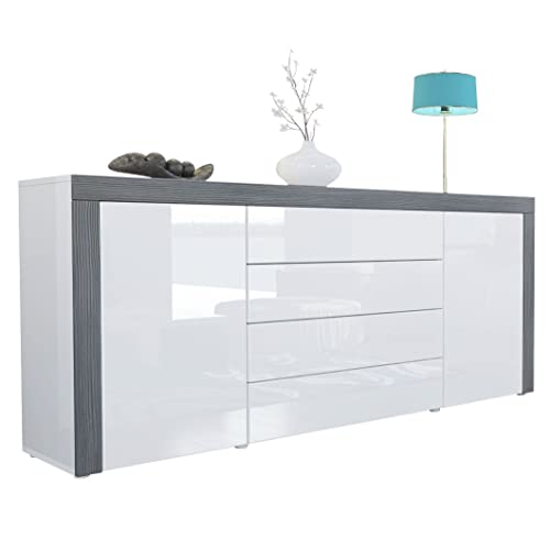 Vladon Buffet Haute Brillance/Armoire Métro Blanc