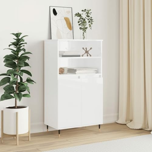 ZEYUAN Buffet Haut Blanc Brillant 60x36x110 cm Bois d''ingén...