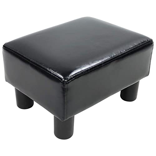 KKTONER Similicuir Ottoman Pouf Tabouret Bas Noir