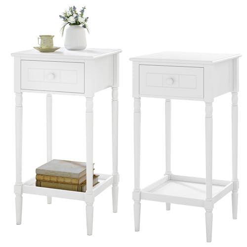 Woltu Lot de 2 Table de Chevet Blanche, Table d'Appoint avec...