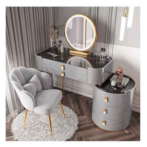 Coiffeuse portable avec miroir et armoire latérale, Table de...