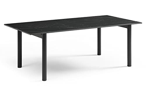 Meuble Table Basse Noir Marbré Céramique 120x60 cm 4 Pieds D...