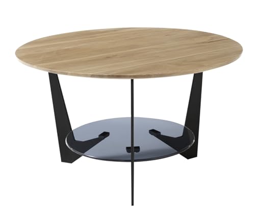 Table basse ronde fabriquée en bois de chêne massif, du verr...
