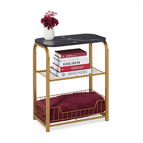 Relaxdays Table de Rangement Marbre Métallique HLP 62x50x30...