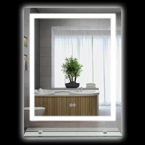 Miroir LED rectangulaire lumineux ajustable anti-buée mural...