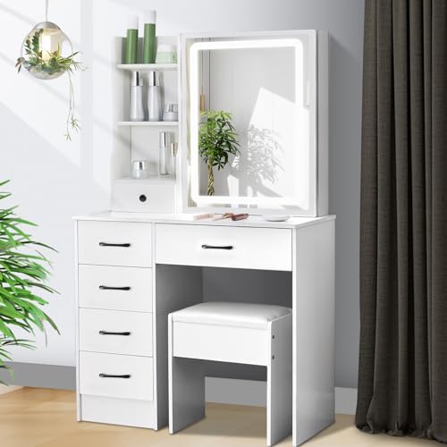Coiffeuse lumineuse avec miroir et tabouret, Table de maquil...