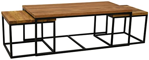 Tables Basses Modulables Bois Recyclé Métal Lot 3