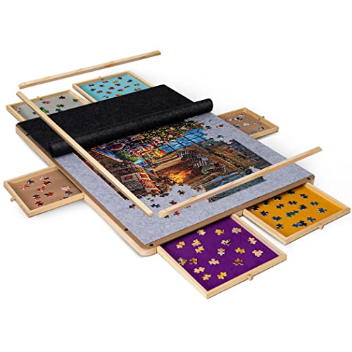 Lavievert Planche de puzzle portable en bois avec 2 tapis de...