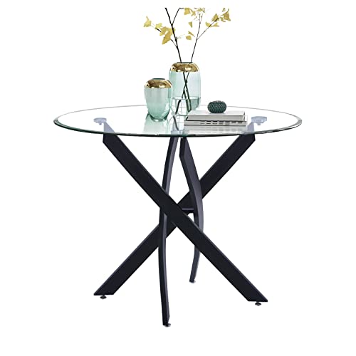 GolDFan Ronde Table de Salle à Manger Verre Trempé Moderne,...