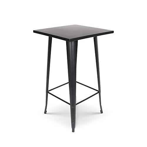 Kosmi Table Haut Carré 60x60cm Mange Debout Industriel Noir