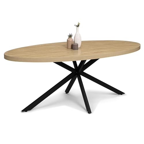 Table Ovale 200cm Aspect Bois Piètement Araignée Métal Noir...