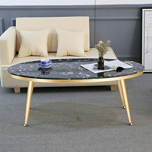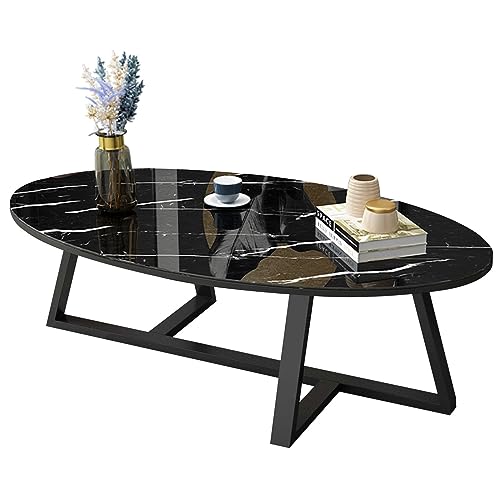 UKALOU Table Basse Moderne Ovale Faux Marbre Blanc/Noir