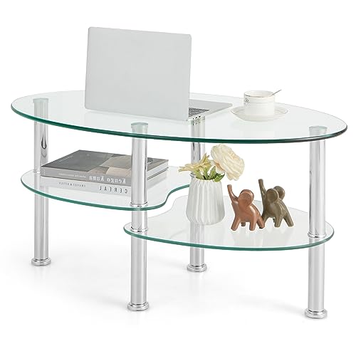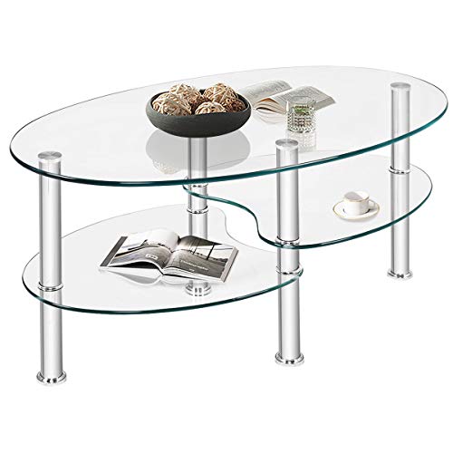 GIANTEX Table Basse Verre Trempé 3N, Table Salon Ovale Trans...