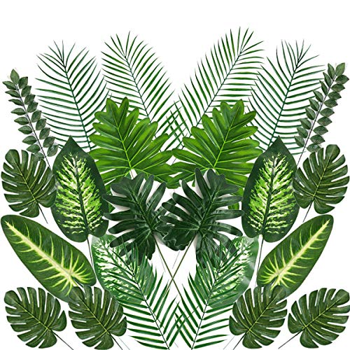 QAQGEAR 24 Pcs 10 Sortes Artificielles Feuilles De Palmier P...