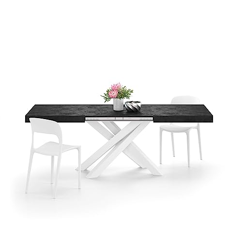 Table Fiver Emma 140x90cm Noir Béton Croisé Pieds Blancs, 6-...