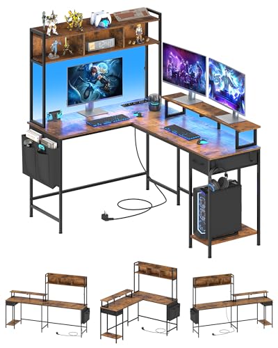 Bureau Gaming LED Rangement Multiprise avec Chargeurs et Pri...
