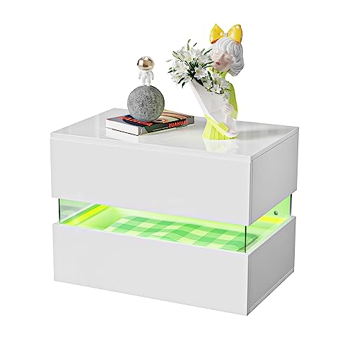 ARunThLana Chevet de 2 tiroirs, Bois moderne, éclairage LED,...