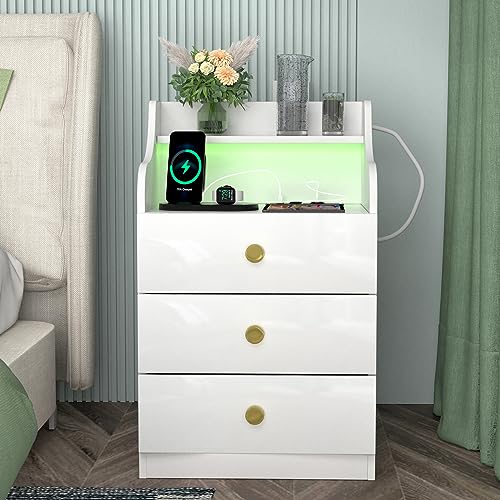 ARunThLana Table de Chevet LED, 3Tiroirs, Nuit, 2PrisesAC, 2...