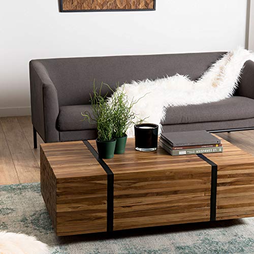 Table basse rectangulaire 110x70cm avec roulettes bois Teck...