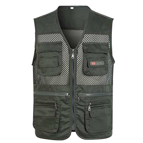 KJDWJRF Gilet d'extérieur homme pêche poches multiples chass...