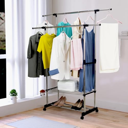 Double barre réglable en hauteur, porte-vêtements à roulette...